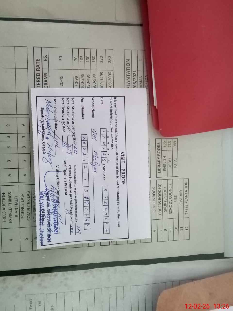 | Certified that this School was Inspected by the Undersigned MEA/DMO Today and the Information Stated Above is as Per Record. | |||||