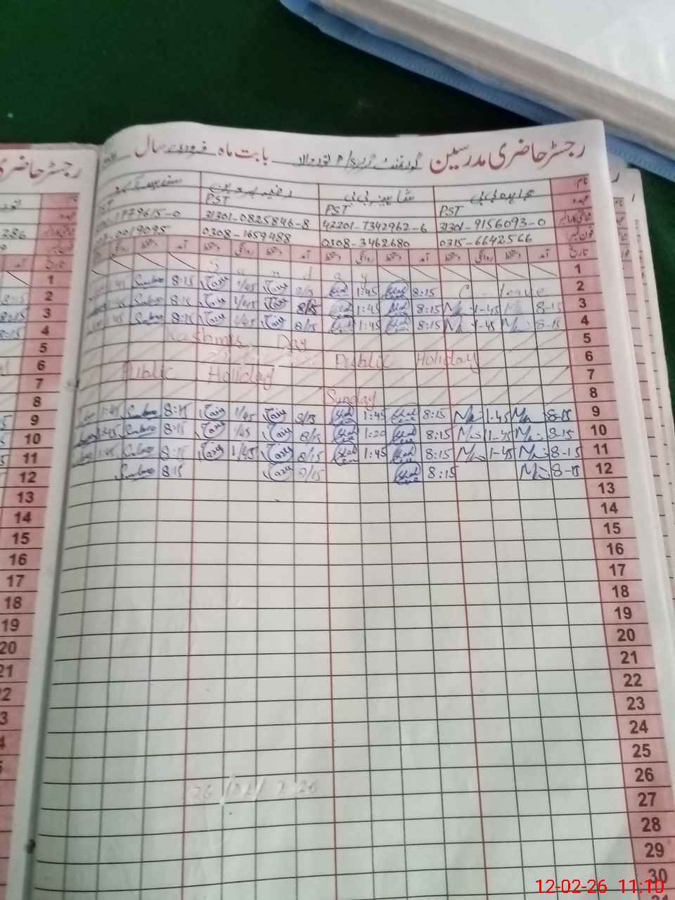 | Name: Sh**** Bi**** Designation: (School Headmaster's/Headmistress's) PST Phone/Cell Number: 03**** |