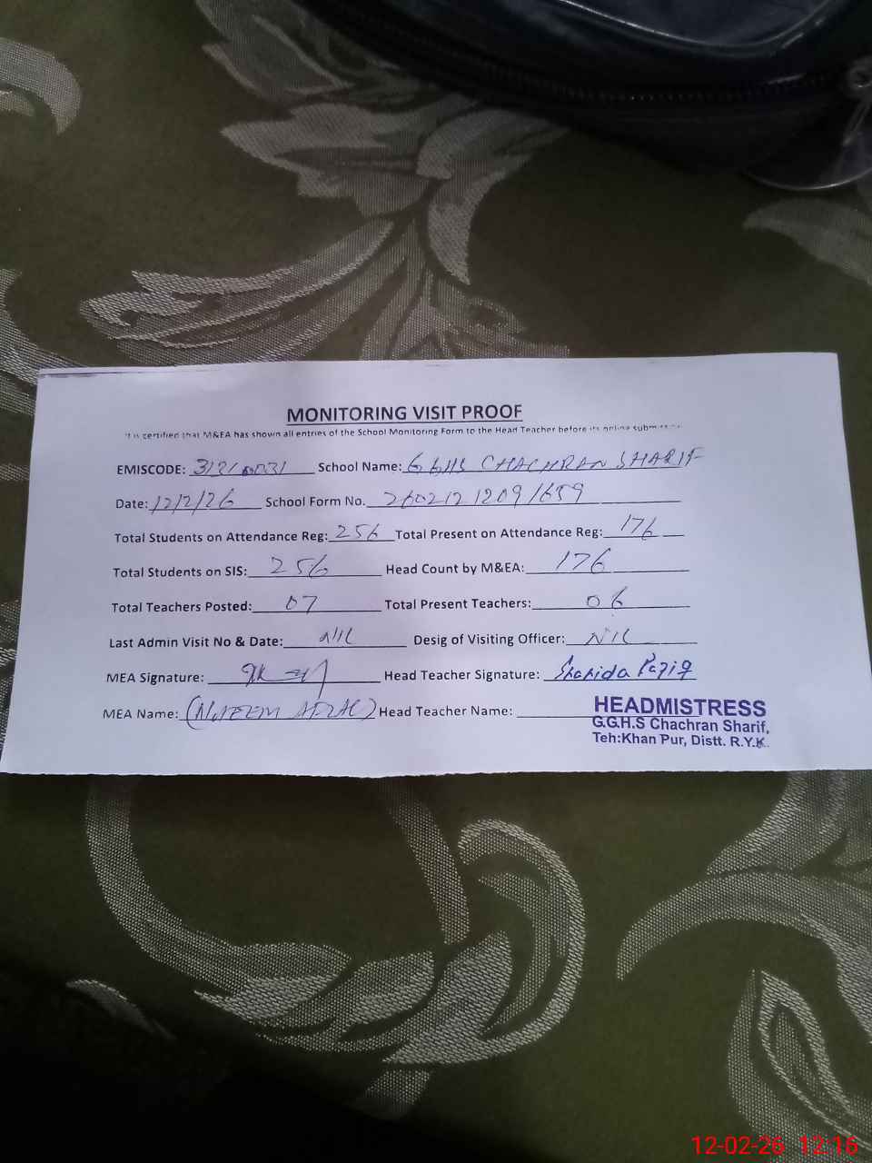 | EMIS Code: 31310031 | Name of School: GGHS CHACHRAN SHARIF | |||