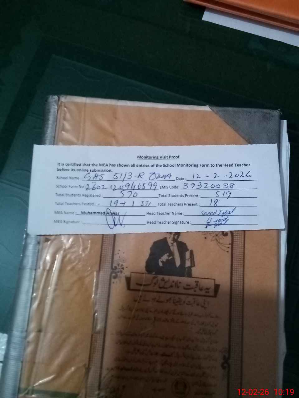 | EMIS Code: 39320038 | Name of School: GHS 51/3-R OKARA | |||