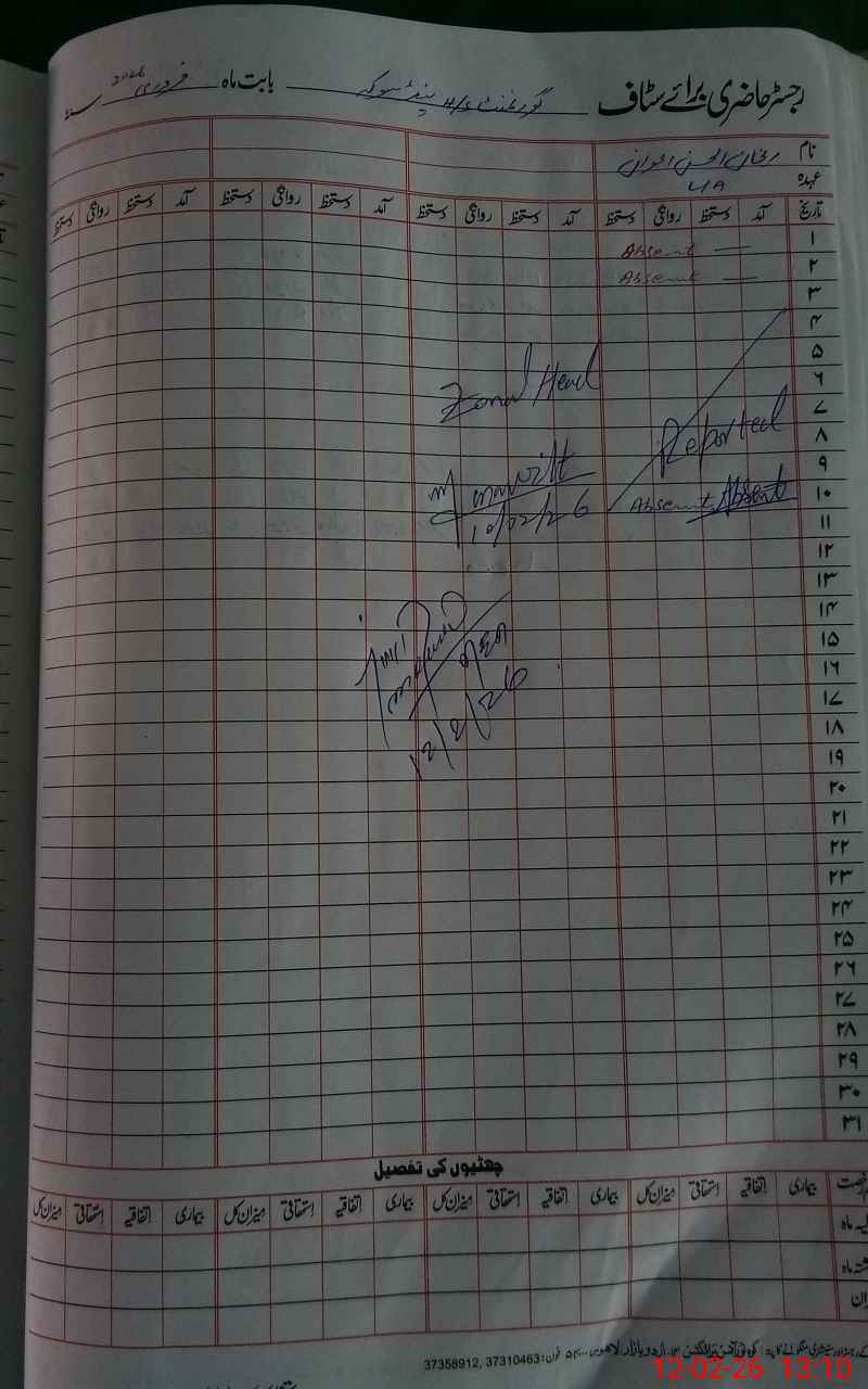 | Name: HA**** URRE**** Designation: (School Headmaster's/Headmistress's) Headmaster Phone/Cell Number: 03**** |