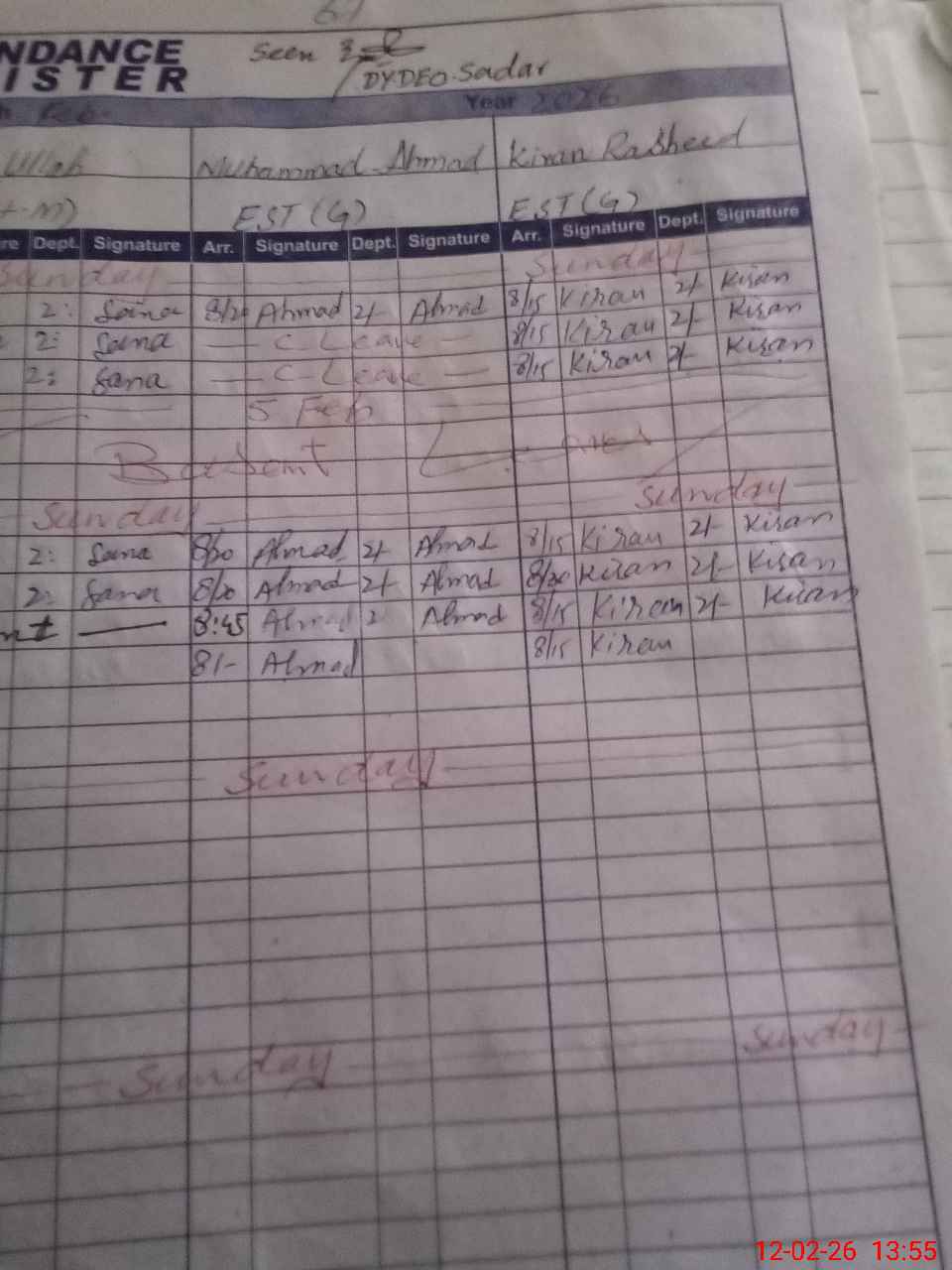 | 33**** | Ab**** Re**** | NAIB QASID | Regular | 0 | 0 | 0 | 0 | 0 | 0 | 0 | 0 | 0 | Absent (Un-Authorized) |