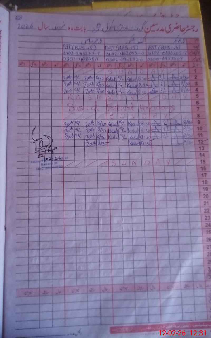 | Name: Mu**** Ab**** Designation: (School Headmaster's/Headmistress's) PST Phone/Cell Number: 03**** |