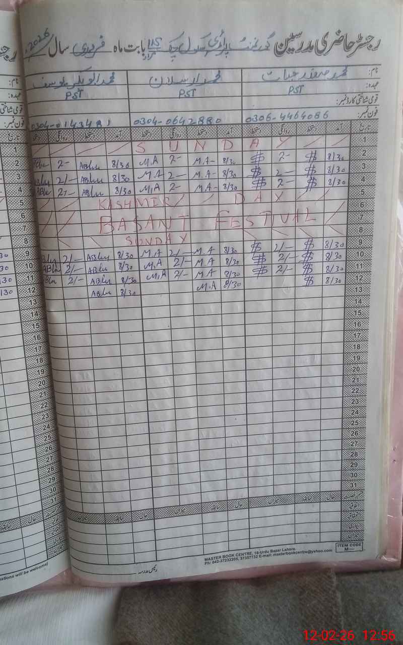 | Name: MSA**** HA**** Designation: (School Headmaster's/Headmistress's) PST Phone/Cell Number: 03**** |