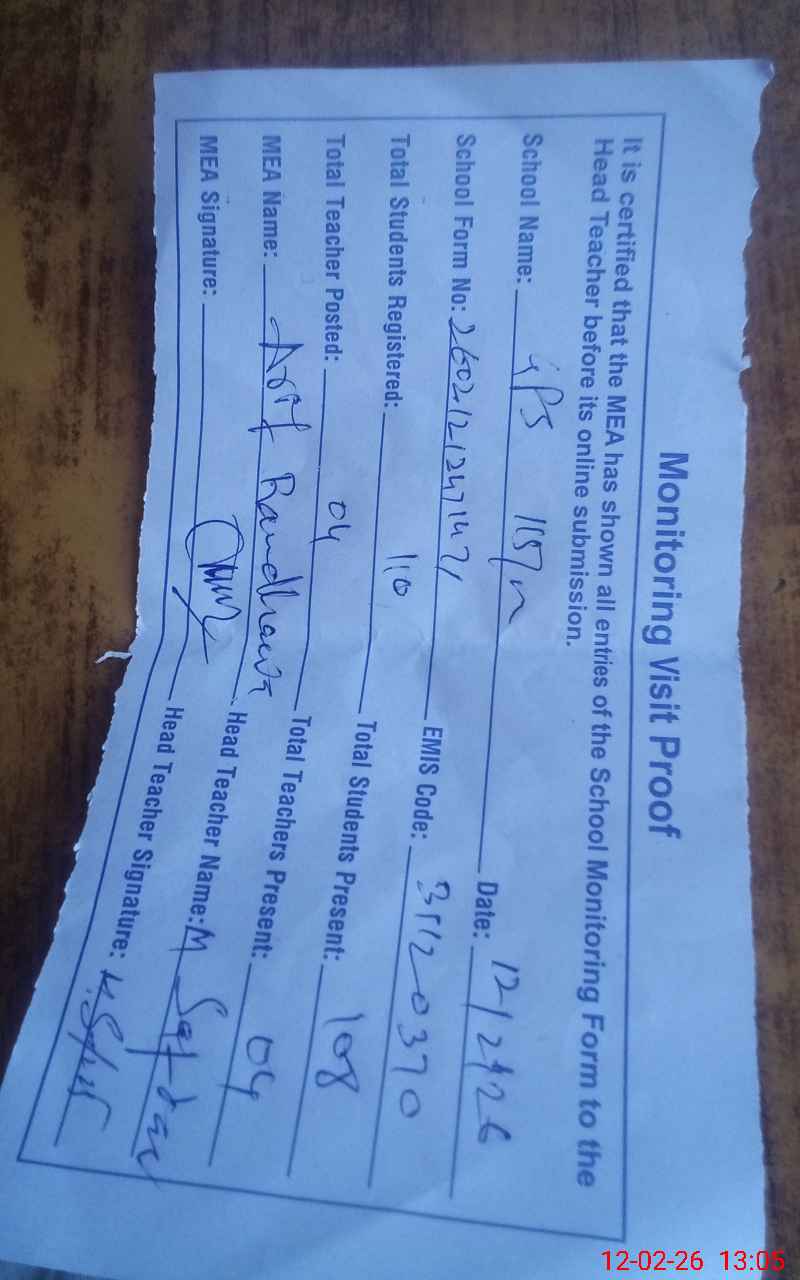 | Attendance Register | Head Teacher | MEA with School | Visit Proof |