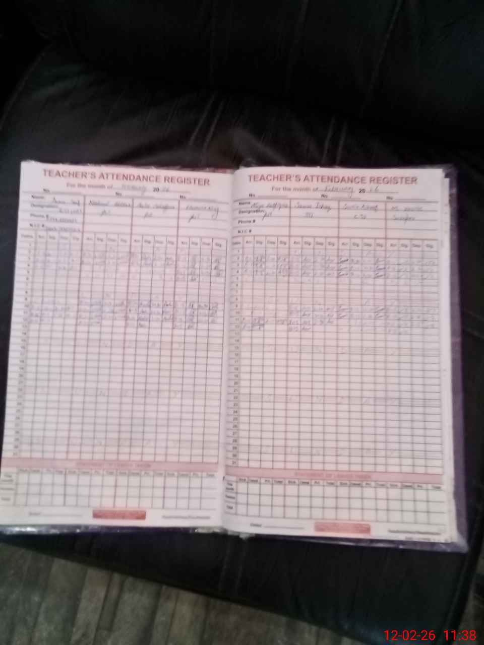 | CNIC | Full Name | Designation | R/C | Absence During Last Calender Month |