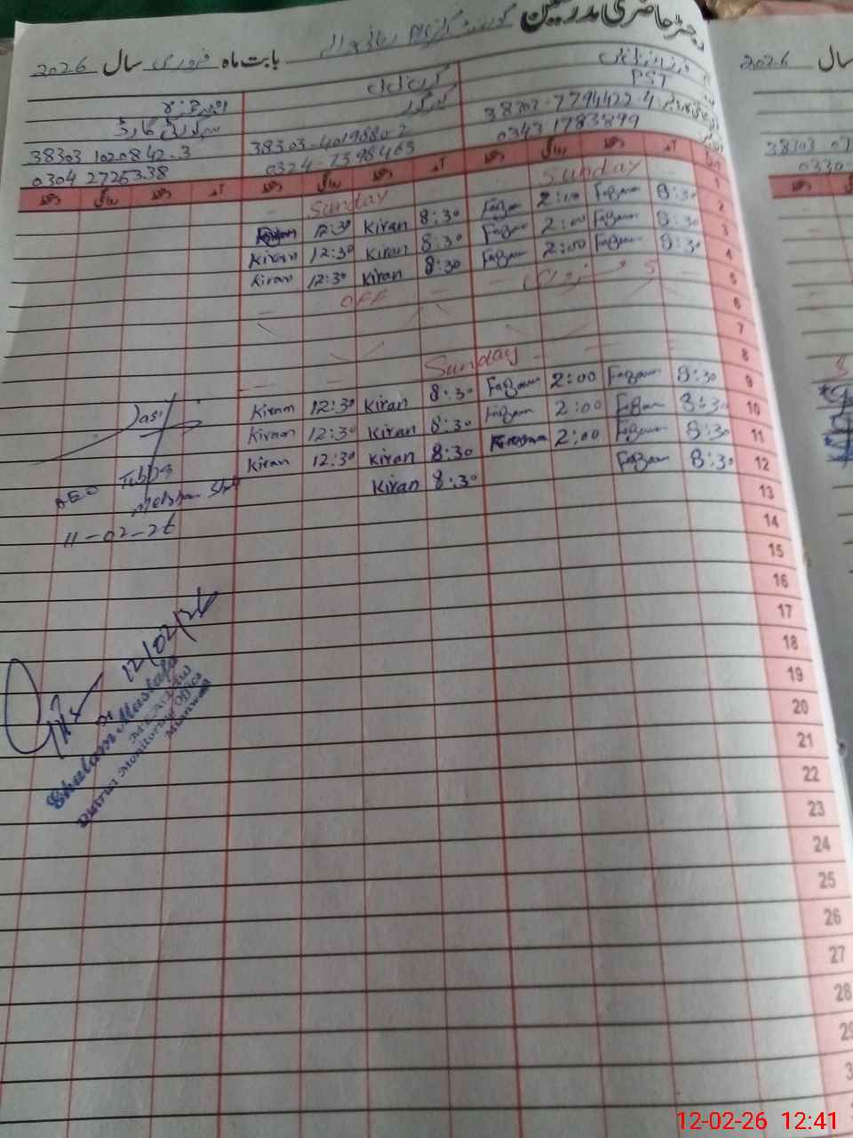 | CNIC | Full Name | Designation | R/C | Absence During Last Calender Month |