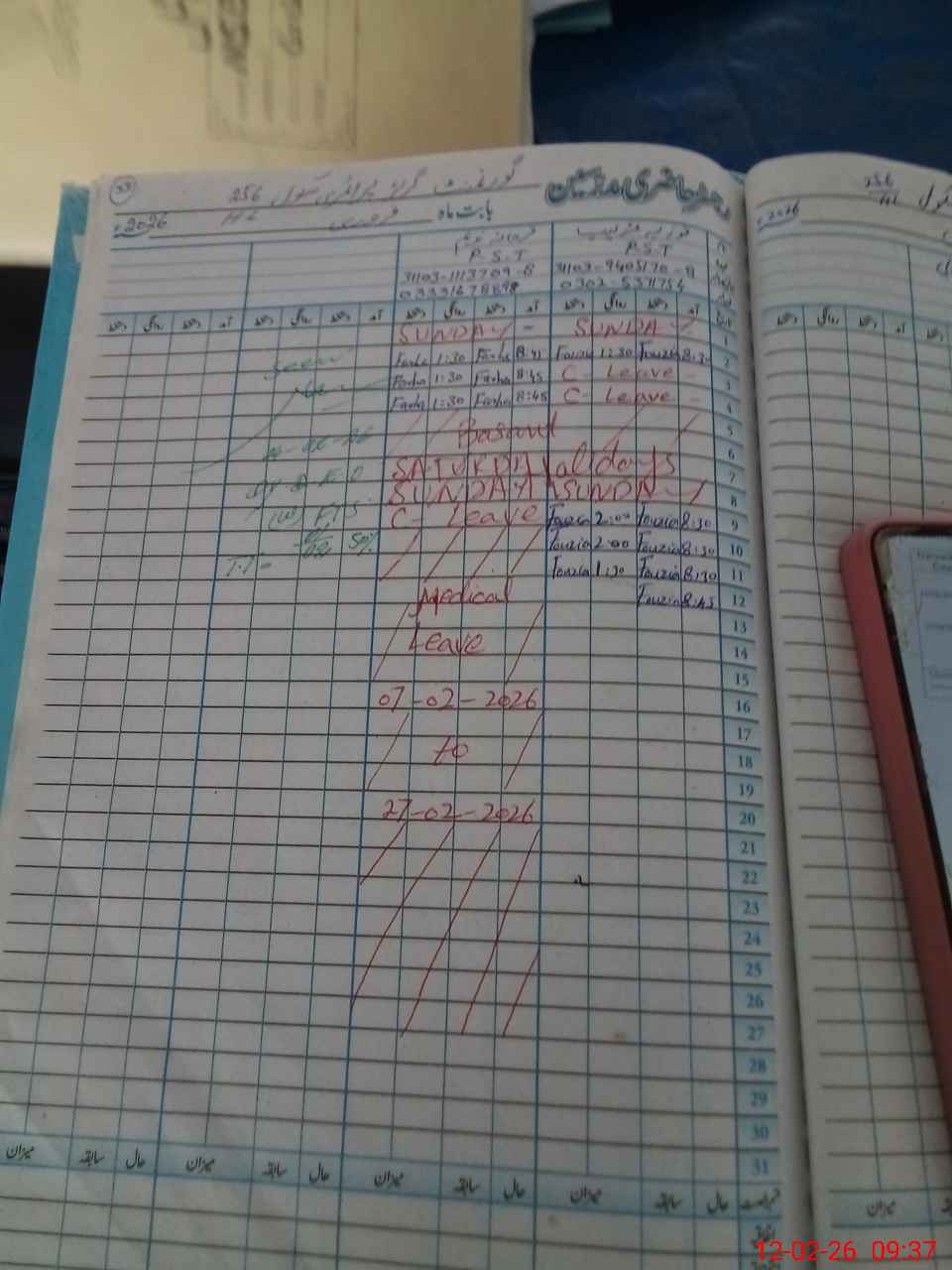 | Leave | Duty | Absent | Maternity | Medical | Ex- Pak |