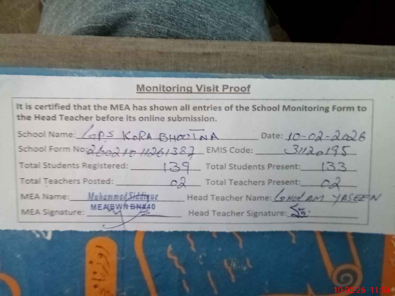 | EMIS Code: 31120195 | Name of School: GPS KORRA BHOOTNA | |||