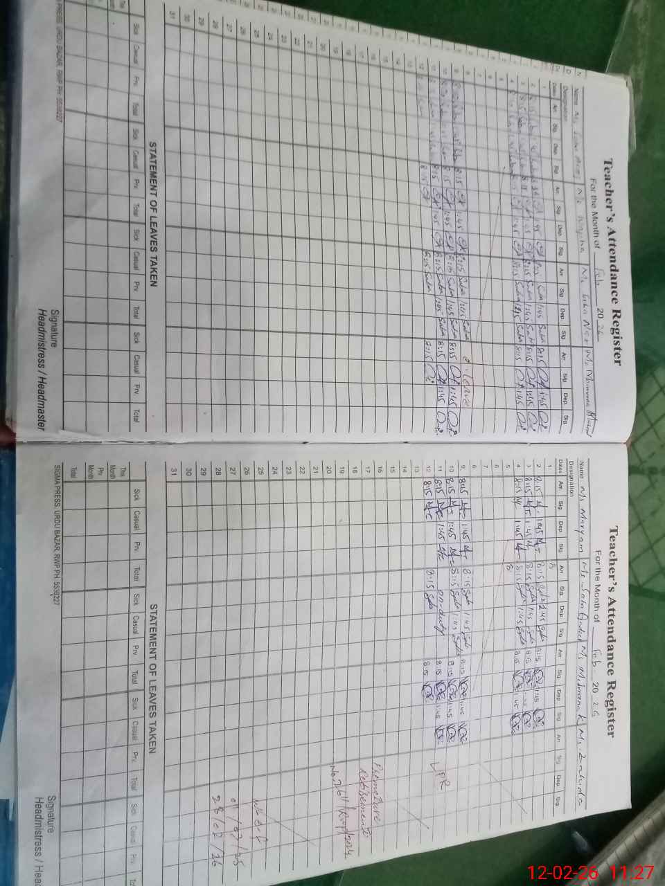 | Attendance Register | Head Teacher | MEA with School | Visit Proof |
