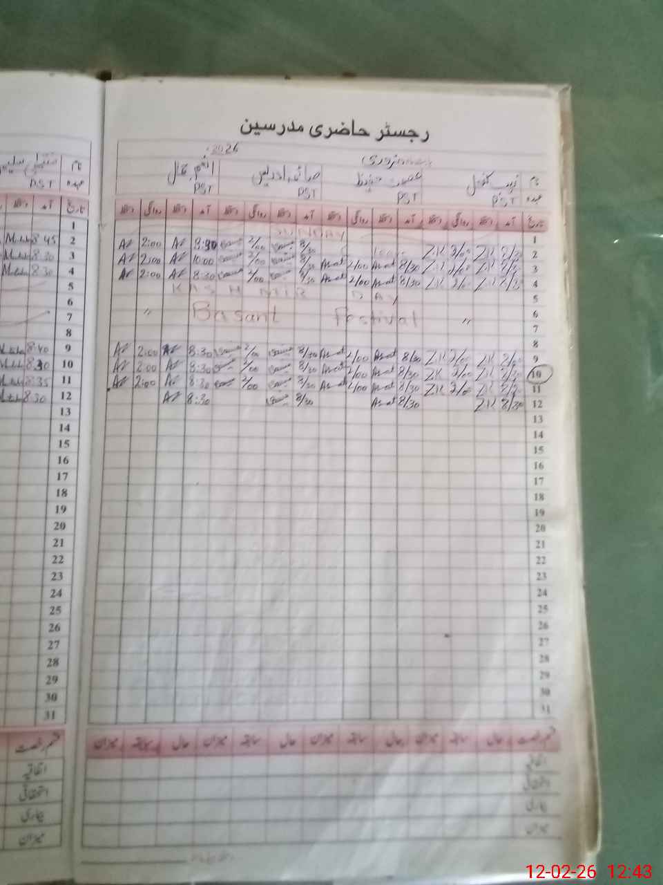 | No. of Students Present - Female | 0 | 0 | 10 | 12 | 17 | 23 | 16 | 96 | ||||||||