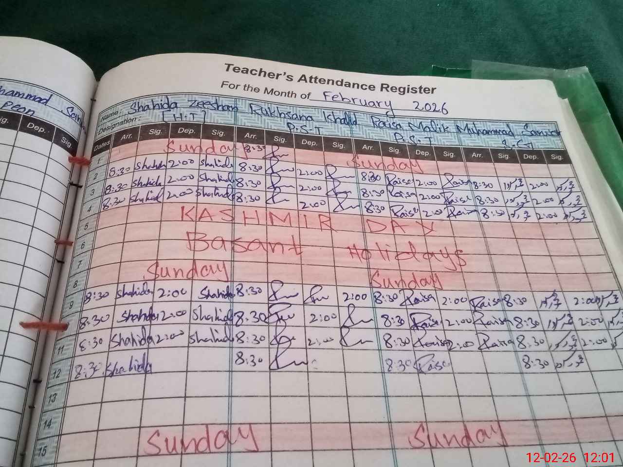 | Name: Sh**** Ze**** Designation: (School Headmaster's/Headmistress's) PST Phone/Cell Number: 03**** |