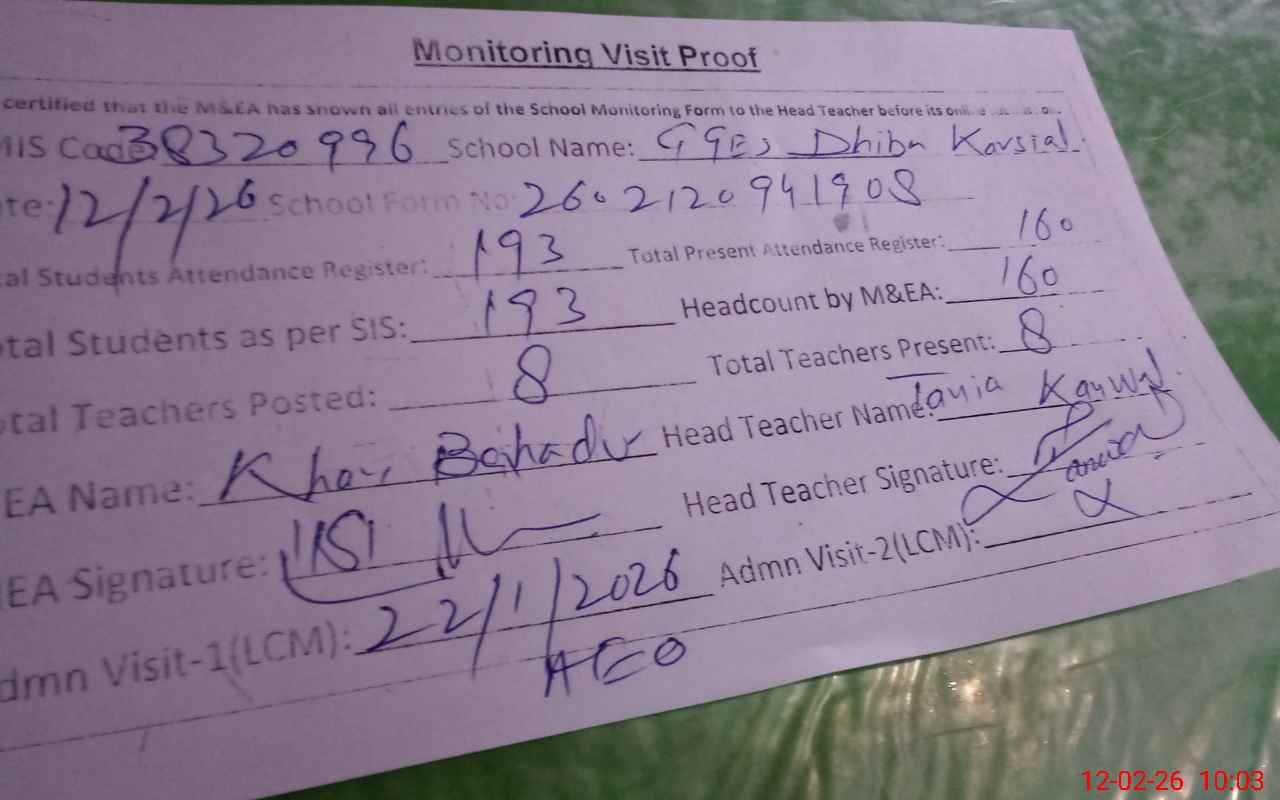 | Monitoring Date: 12-02-2026 | Start Time: 12-02-2026 09:27 AM | End Time: 12-02-2026 10:04 AM | Name of MEA: Kh**** Ba**** Kh**** | |