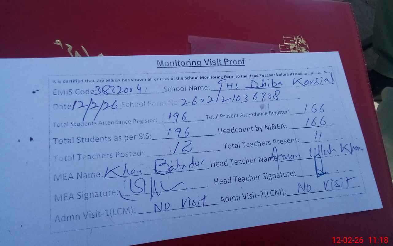| EMIS Code: 38320041 | Name of School: GHS DHIBBA KARSIAL | |||