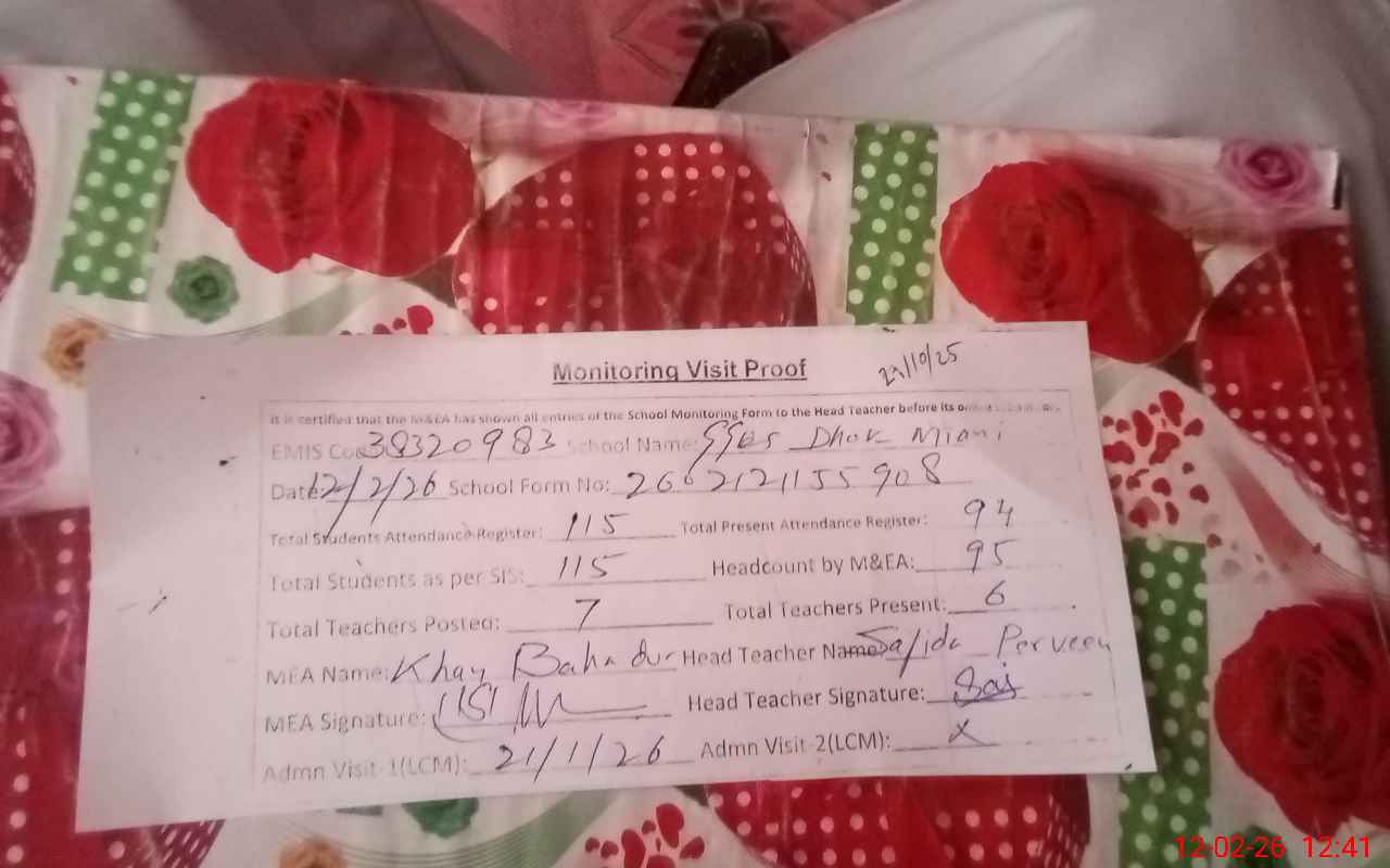 | Certified that this School was Inspected by the Undersigned MEA/DMO Today and the Information Stated Above is as Per Record. | |||||