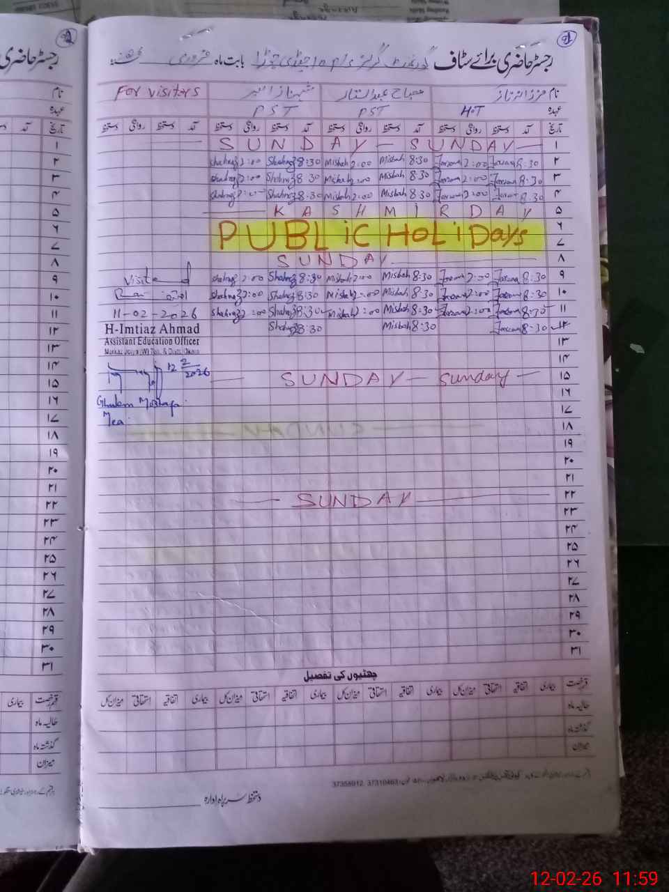 | Name: FA**** NA**** Designation: (School Headmaster's/Headmistress's) PST/ Phone/Cell Number: 03**** |