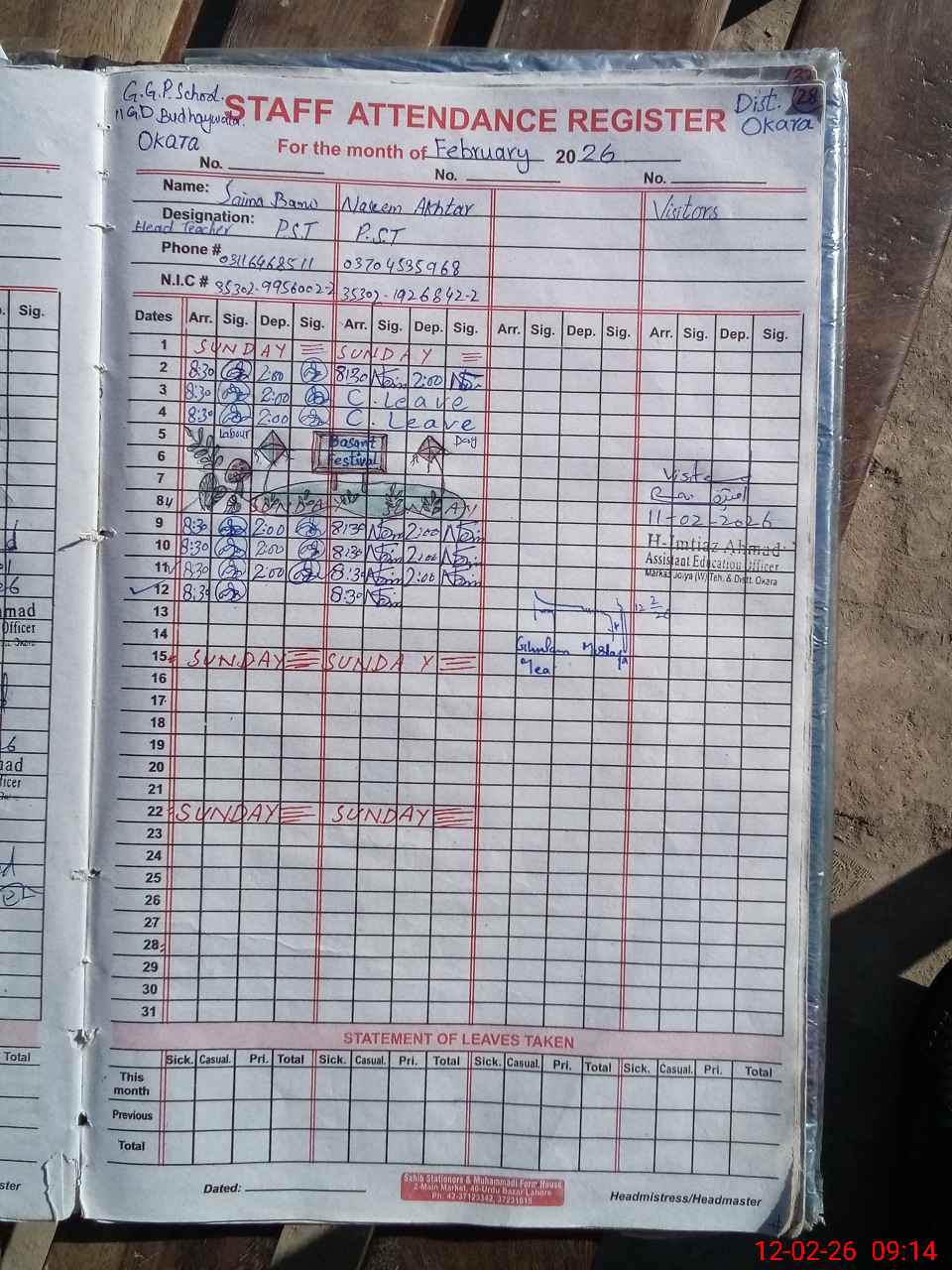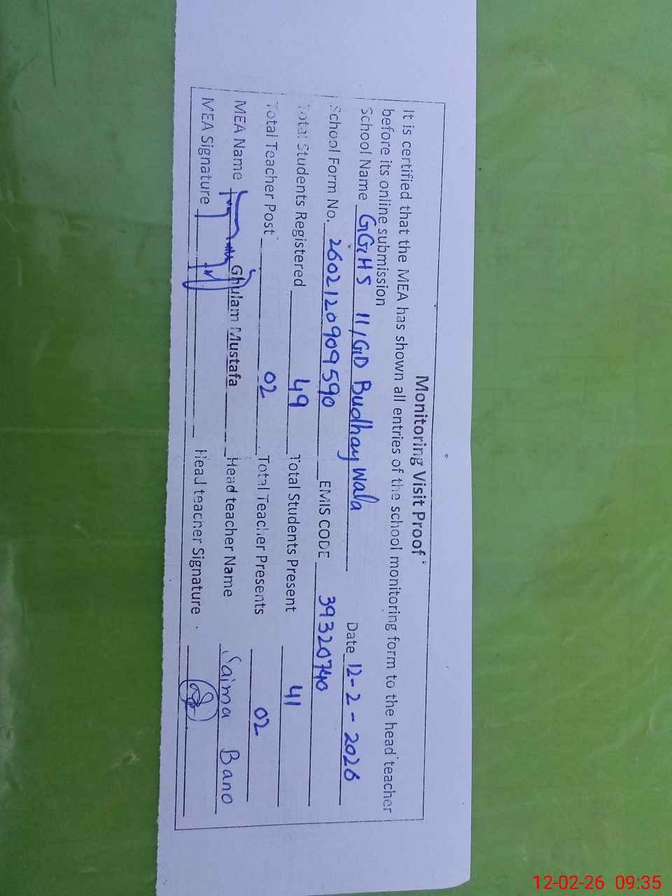 | EMIS Code: 39320740 | Name of School: GGPS 11/G.D BUDHAY WALA | |||