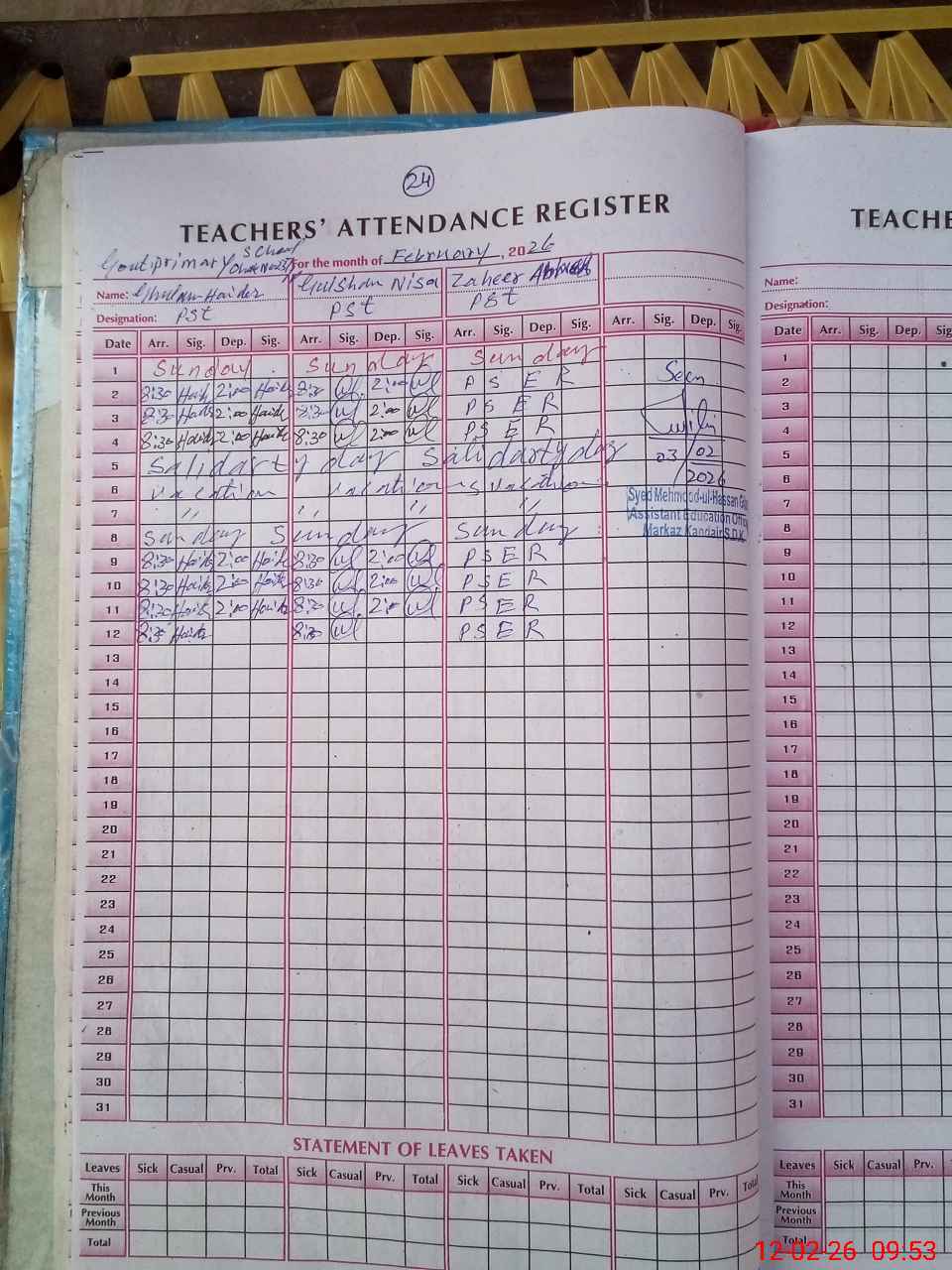 | Name: GH**** HA**** Designation: (School Headmaster's/Headmistress's) PST Phone/Cell Number: 03**** |