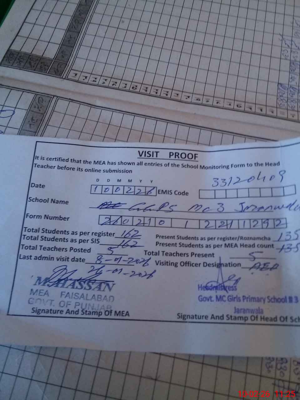 | EMIS Code: 33120409 | Name of School: GGPS MC NO.3 JARANWALA | |||