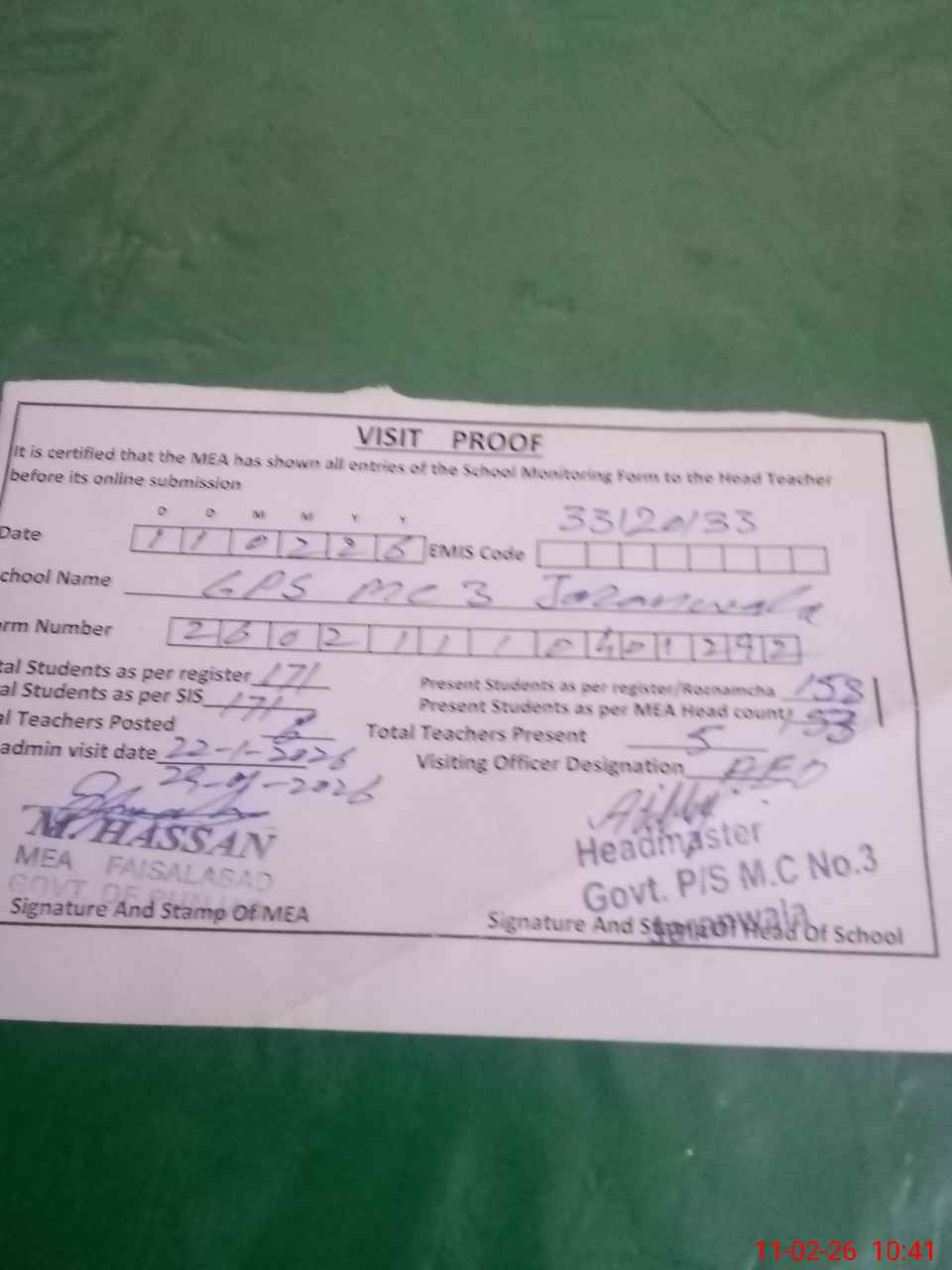 | EMIS Code: 33120133 | Name of School: GPS MC NO. 3 JARANWALA | |||