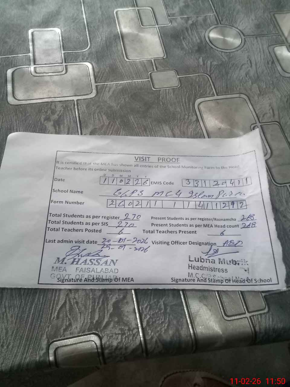| EMIS Code: 33120411 | Name of School: GGPS MC NO. 4 JARANWALA | |||