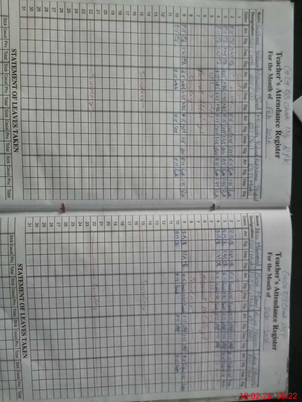 | Monitoring Date: 10-02-2026 | Start Time: 10-02-2026 09:08 AM | End Time: 10-02-2026 09:29 AM | Name of MEA: Ma**** UlHa**** | |