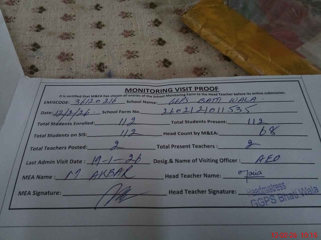 | EMIS Code: 36120216 | Name of School: GGPS BHATTI WALA SHUJABAD | |||