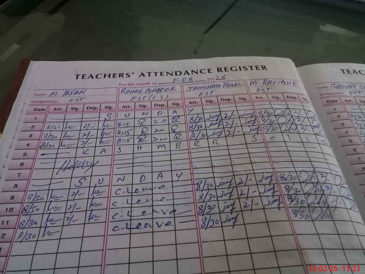 | CNIC | Full Name | Designation | R/C | Absence During Last Calender Month |