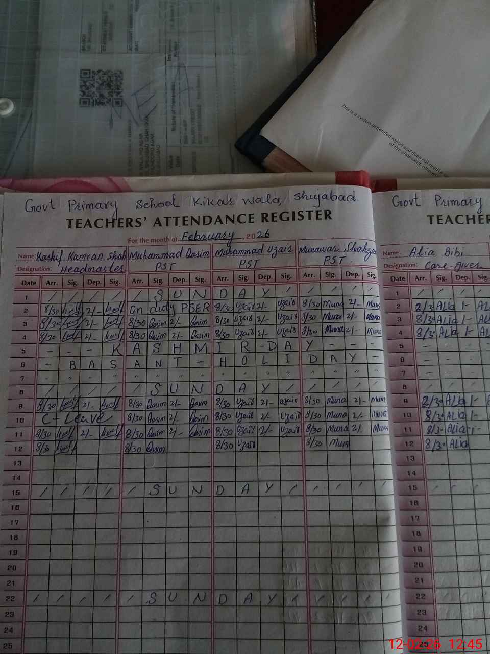 | Name: KA**** KA**** Designation: (School Headmaster's/Headmistress's) PST Phone/Cell Number: 03**** |