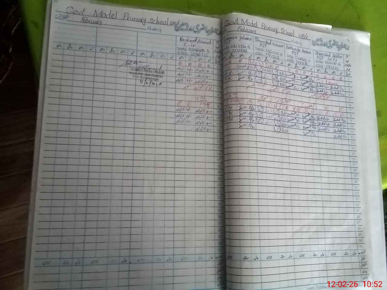 | CNIC | Full Name | Designation | R/C | Absence During Last Calender Month |