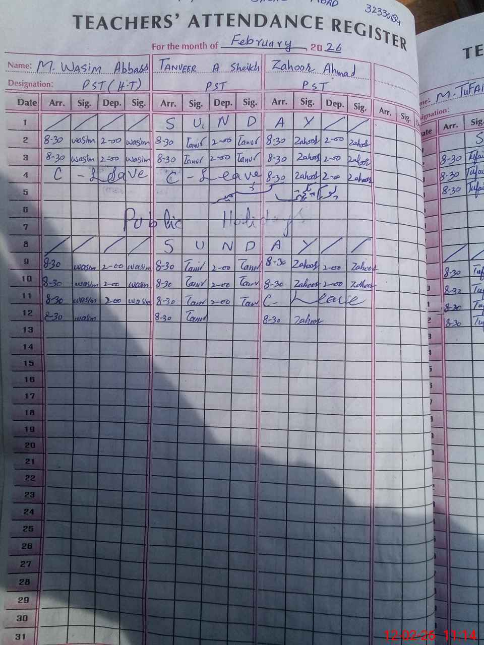 | Name: TU**** QA**** Designation: (School Headmaster's/Headmistress's) PST Phone/Cell Number: 03**** |