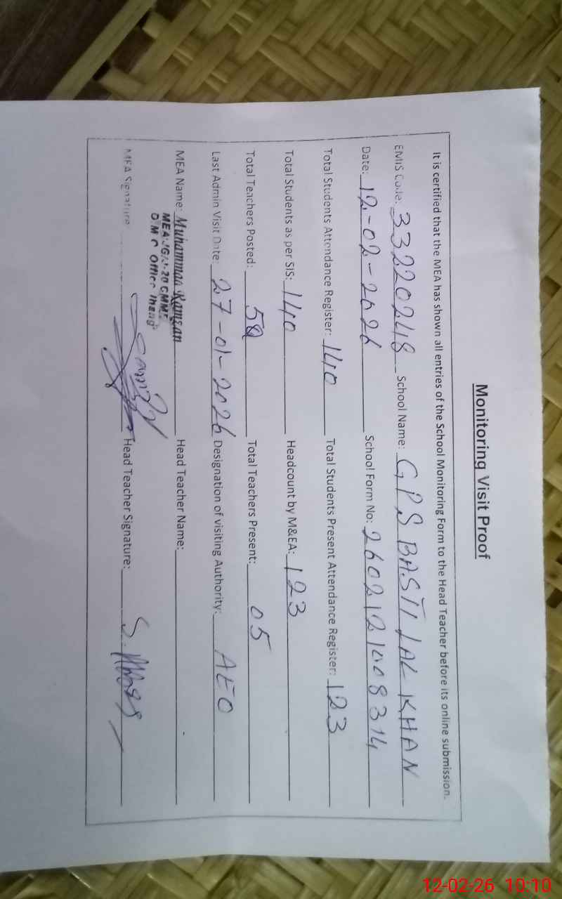 | EMIS Code: 33220248 | Name of School: GPS BASTI LAL KHAN | |||