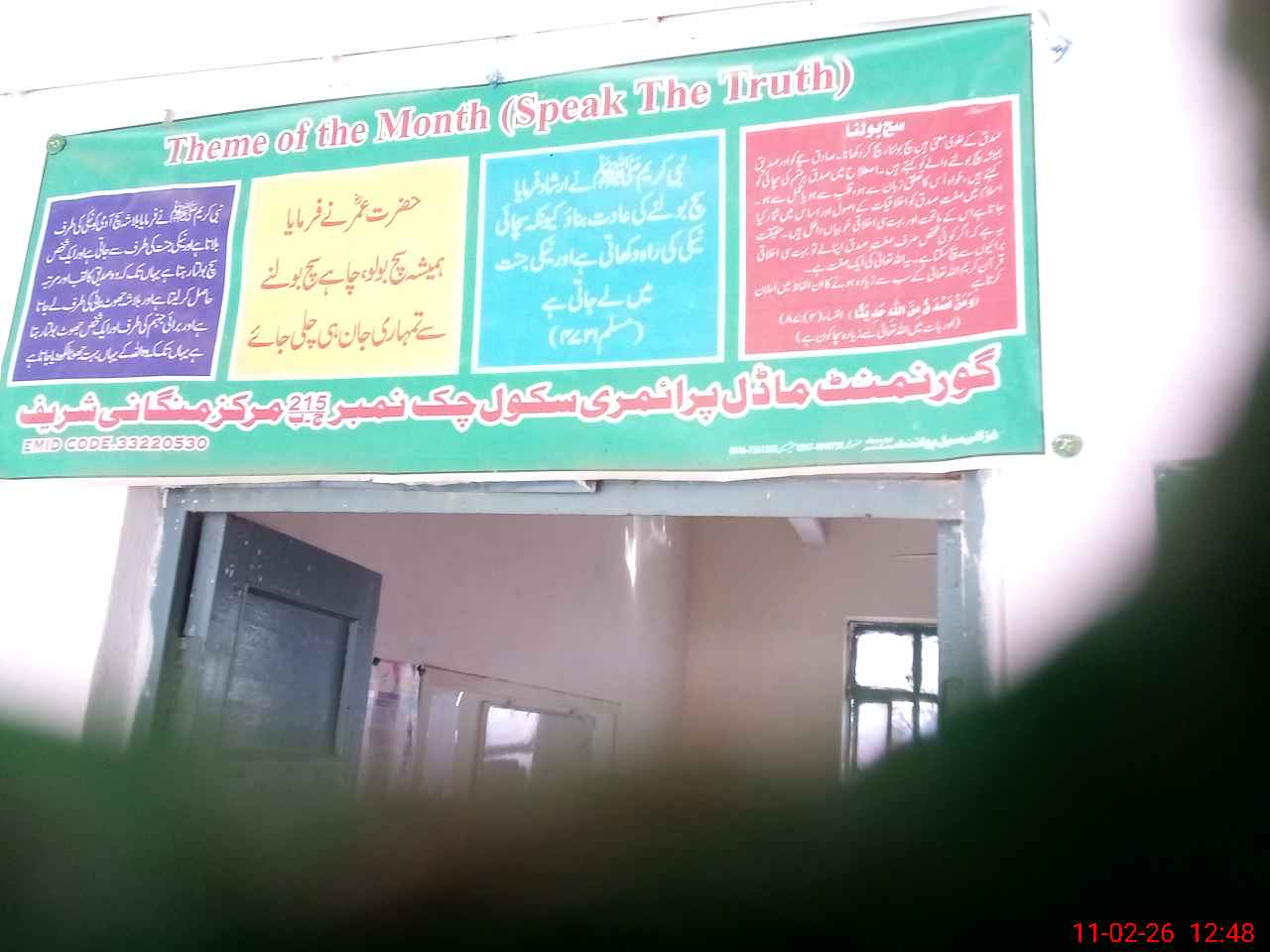 | EMIS Code: 33220530 | Name of School: GMPS CHAK NO 215 JB | |||