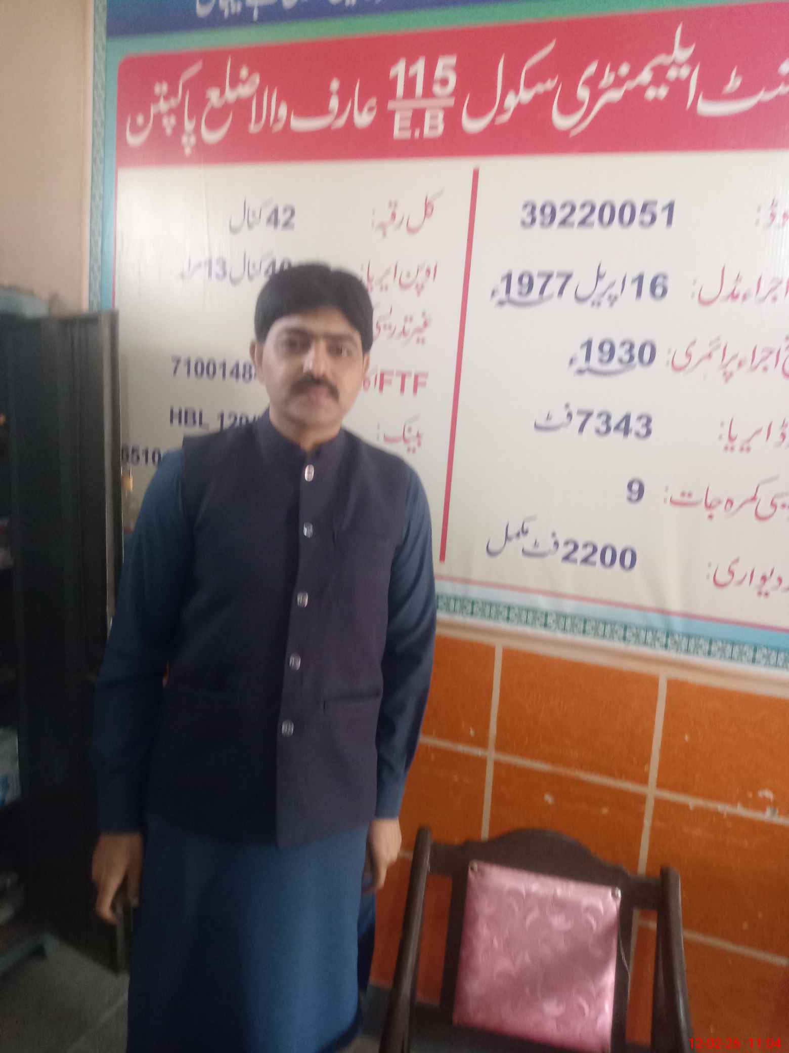 | Name: MU**** IM**** Designation: (School Headmaster's/Headmistress's) S.S.T (GENERAL) Phone/Cell Number: 03**** |