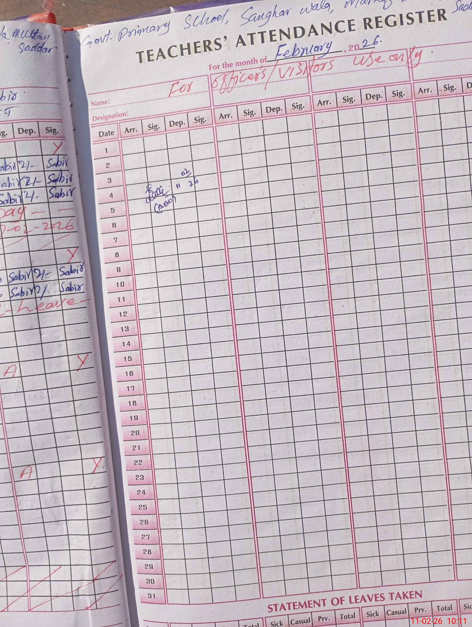 | Leave | Duty | Absent | Maternity | Medical | Ex- Pak |