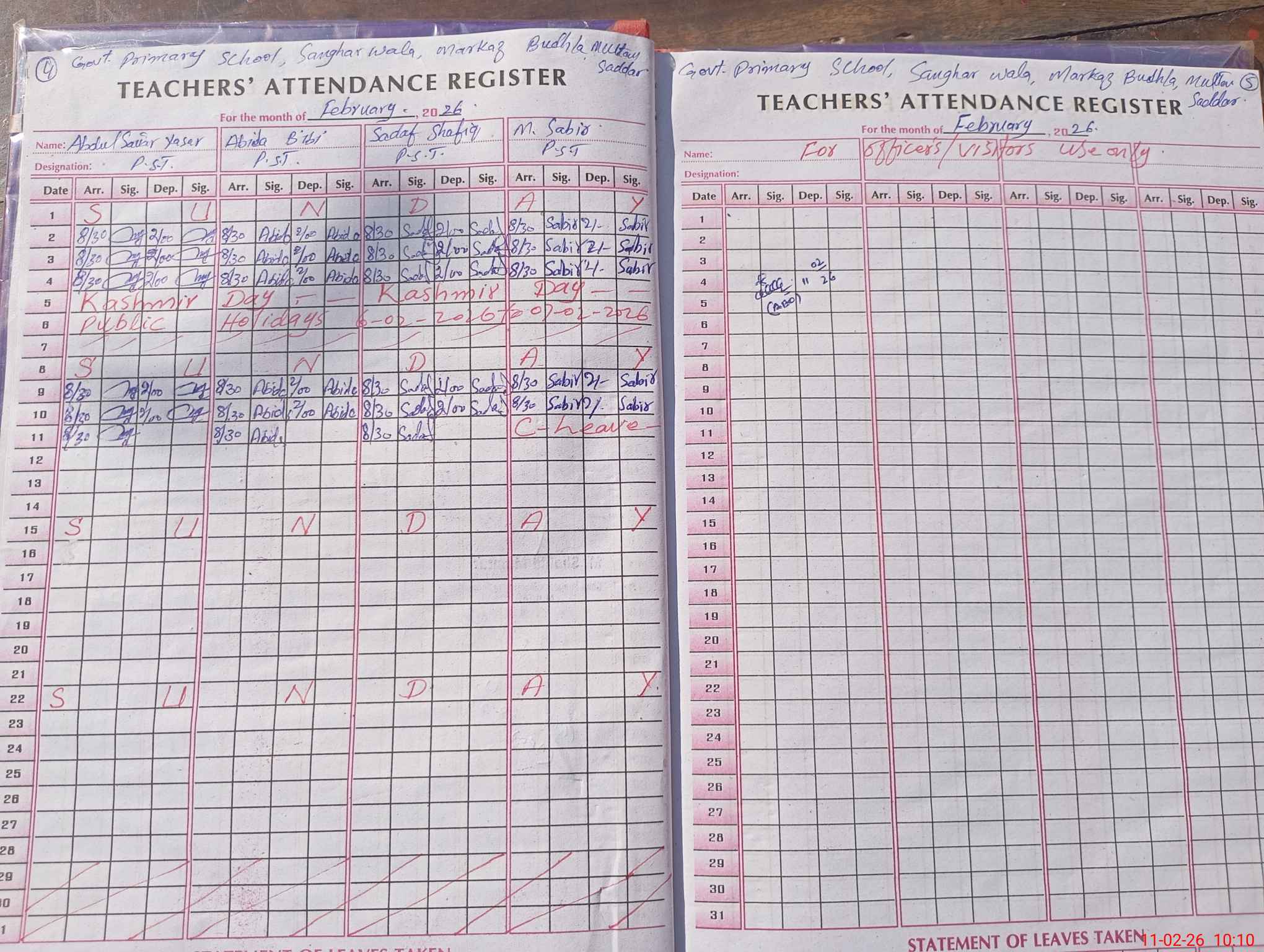 | 32**** | Mu**** Sa**** | PST Science/Maths | Regular | 0 | 0 | 0 | 0 | 0 | 0 | 0 | 0 | 0 | Absent (Un-Authorized) |