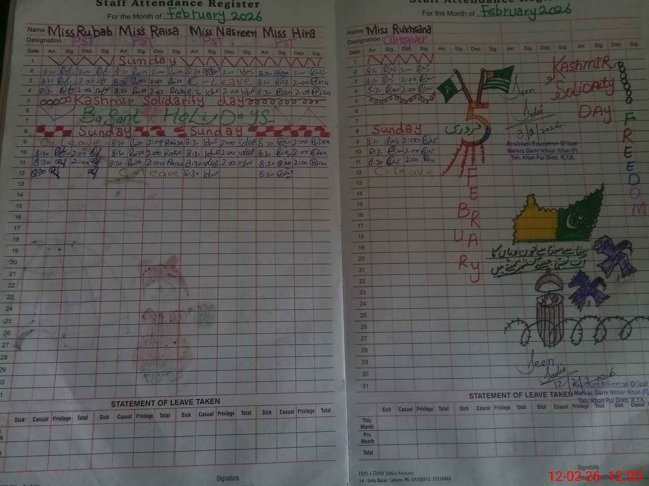 | CNIC | Full Name | Designation | R/C | Absence During Last Calender Month |