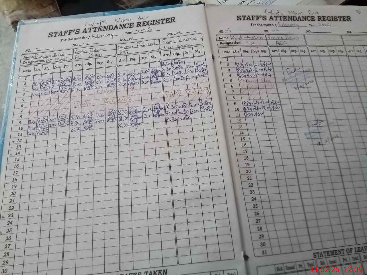 | Attendance Register | Head Teacher | MEA with School | Visit Proof |