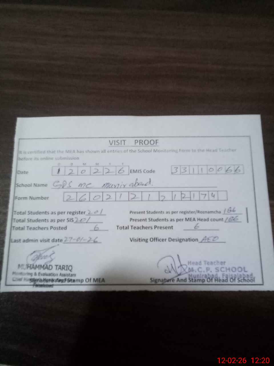 | EMIS Code: 33110066 | Name of School: GPS MC MUNIR ABAD | |||