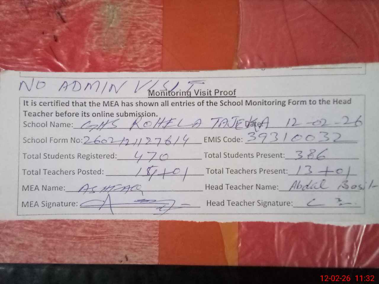 | EMIS Code: 39310032 | Name of School: GHS ROHELA TAJEKA | |||