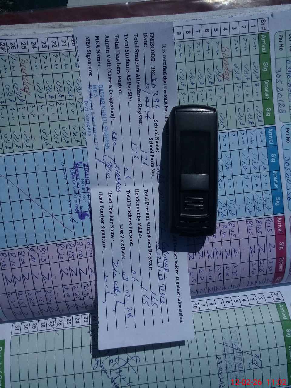 | Attendance Register | Head Teacher | MEA with School | Visit Proof |