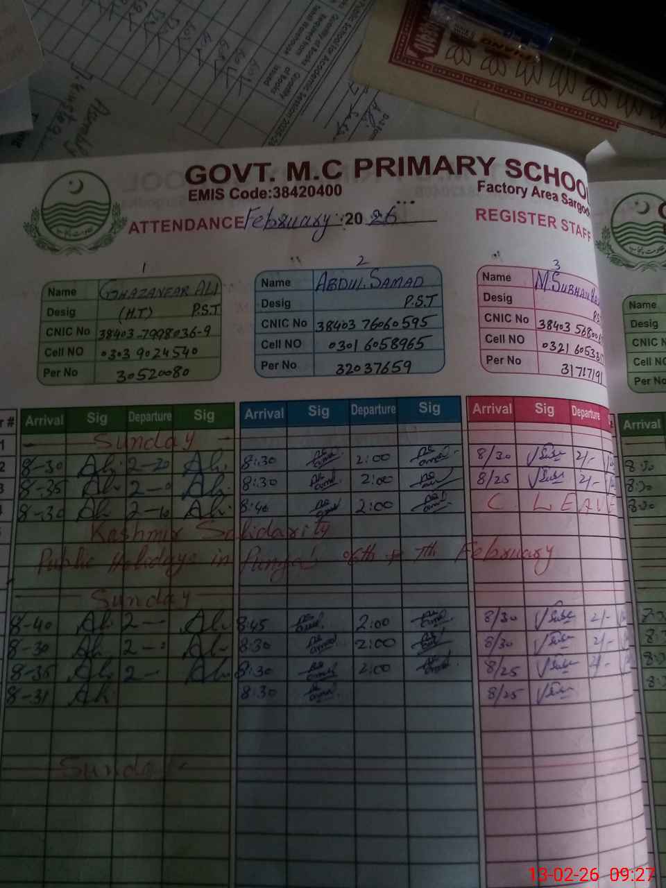 | EMIS Code: 38420400 | Name of School: GPS MC NO. 11 FACTORY AREA SARGODHA | |||