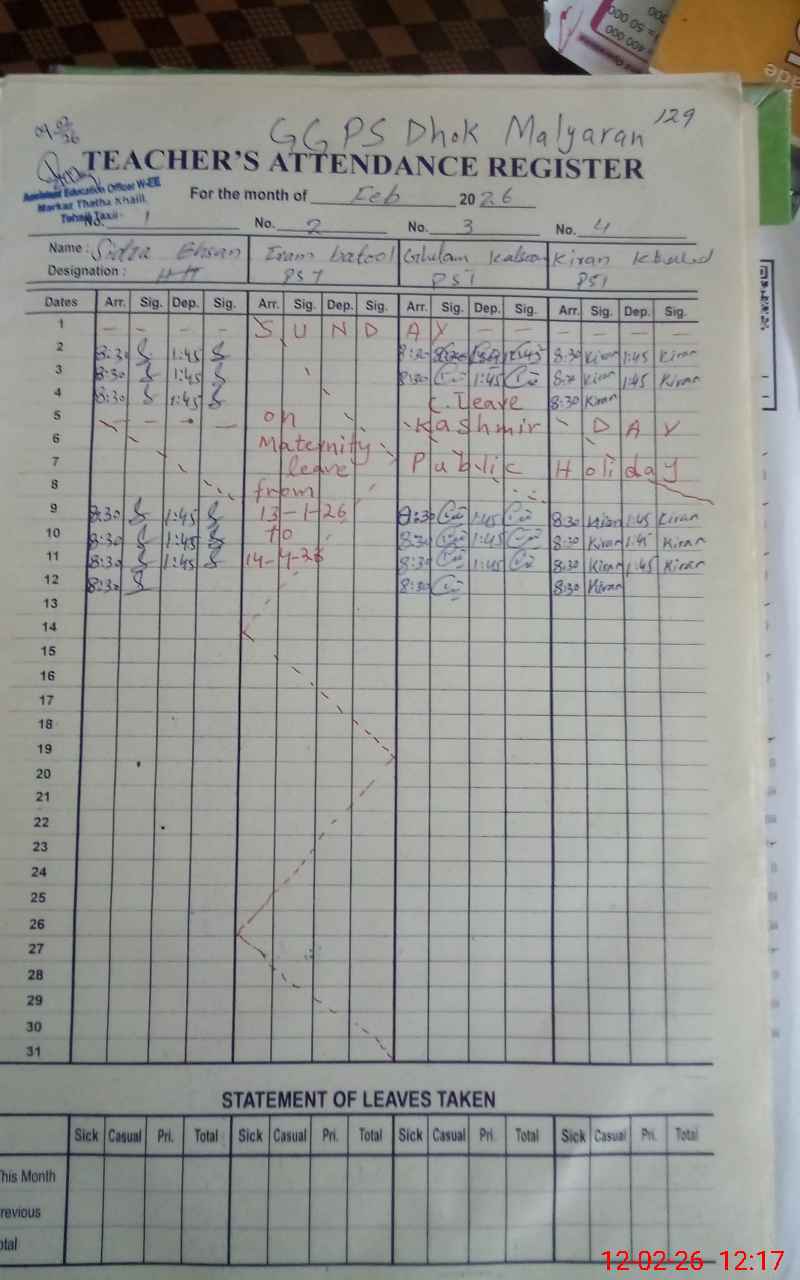 | 37**** | Ir**** Ba**** | PST Science/Maths | Regular | 0 | 0 | 0 | 0 | 0 | 0 | 0 | 0 | 0 | Maternity |