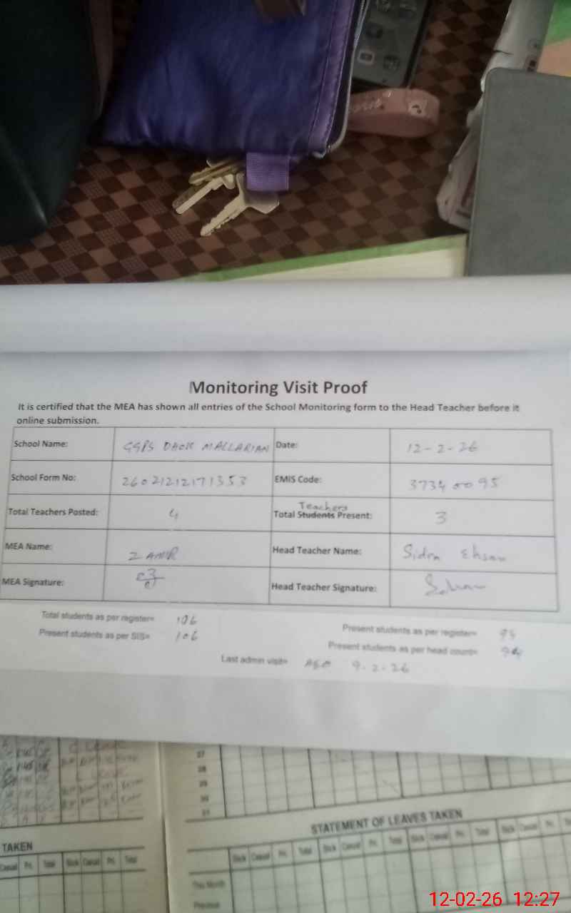 | Attendance Register | Head Teacher | MEA with School | Visit Proof |