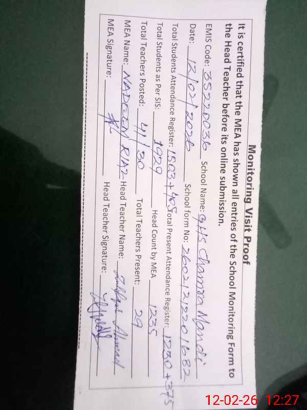 | EMIS Code: 35220036 | Name of School: GHS CHAMRA MANDI LAHORE | |||