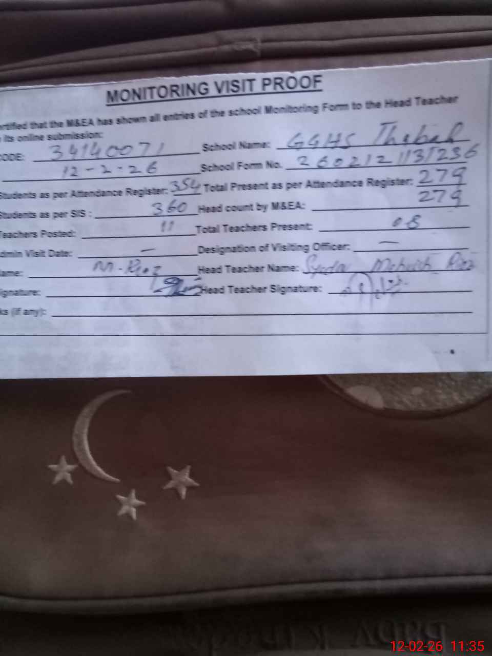 | EMIS Code: 34140071 | Name of School: GGHS THABAL | |||