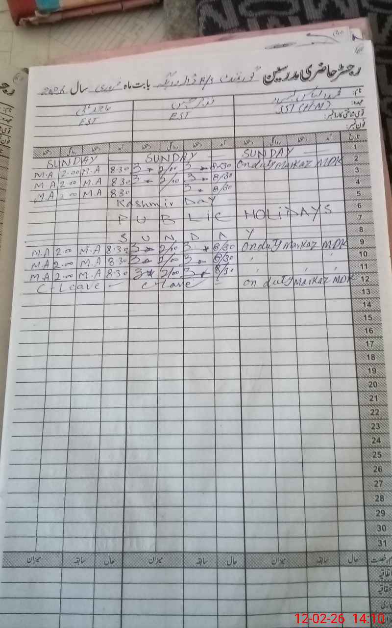 | 35**** | Ma**** Al**** | EST Vernacular | Regular | 2 | 0 | 0 | 0 | 0 | 0 | 0 | 0 | 2 | Casual |