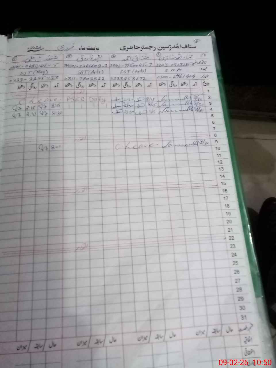 | Name: SA**** UL**** SH**** Designation: (School Headmaster's/Headmistress's) Senior Headmaster Phone/Cell Number: 03**** |