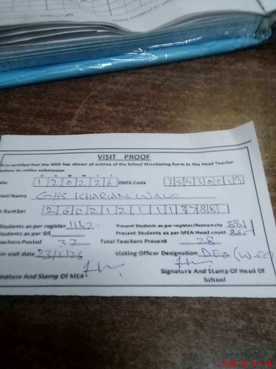| EMIS Code: 35430019 | Name of School: GHS KHARIAN WALA | |||