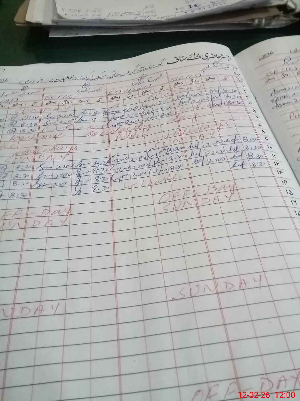 | CNIC | Full Name | Designation | R/C | Absence During Last Calender Month |